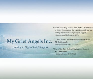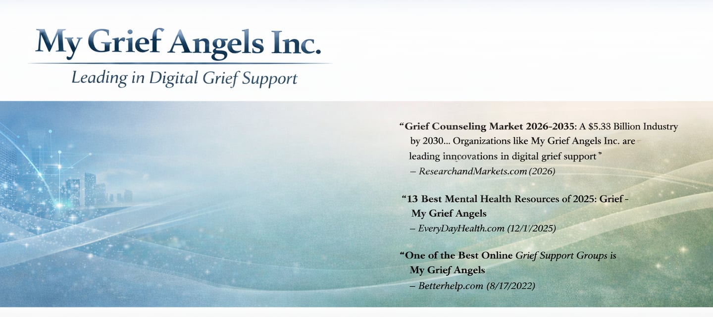 EMERGENCY HELP is available from the SUICIDE LINE at 988 - which is OPEN 24/7 and FREE to all or if you cannot reach them - call 911. ONLY IF YOU ARE NOT EXPERIENCING ANY SUICIDAL THOUGHTS; including those of hurting yourself or others, and have the approval of your mental health professional to participate in open free virtual peer-led grief support groups, ONLY THEN, please join us. My Grief Angels is a 100% volunteer-created,developed and managed public non-profit for & by people grieving. All shared grief journeys and stories in this site are by real people grieving, and in some cases "AI Grief Avatars/Griefatars" are used to read and further highlight some of the incredibly powerful real-life shared stories. The support and information provided by all the volunteers in the peer-led virtual grief support groups, online chats - grief chat hours and other free online services are for general informational purposes and are not a substitute for professional mental health advice, diagnosis, or treatment - always consult your own mental health professional prior to joining any peer-led grief support group, online grief chat community or any other peer-led grief support services. Volunteers are not licensed therapists, counselors, or any other type of mental health professional - they are people grieving like yourself and volunteering their time to simply share their own grief journey and be present for others grieving or anticipating the death of a loved one. Therapy, diagnosis of conditions, and prescription of treatments are NOT offered. Always consult with a qualified mental health professional for any concerns about mental health or well-being. Please always consult your mental health professionals on whether free open virtual peer-led grief support groups are appropriate for you - as they are not appropriate for everyone.
